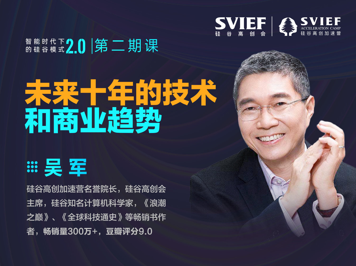 吴军博士会深度讲解未来十年最具创新潜力的技术以及创业者、投资人必看的的商业大趋势,帮助大家在庞大的市场需求之下把握机会,洞悉未来产业的痛点,在新技术场景下,找准自己的位置,成为受益者。